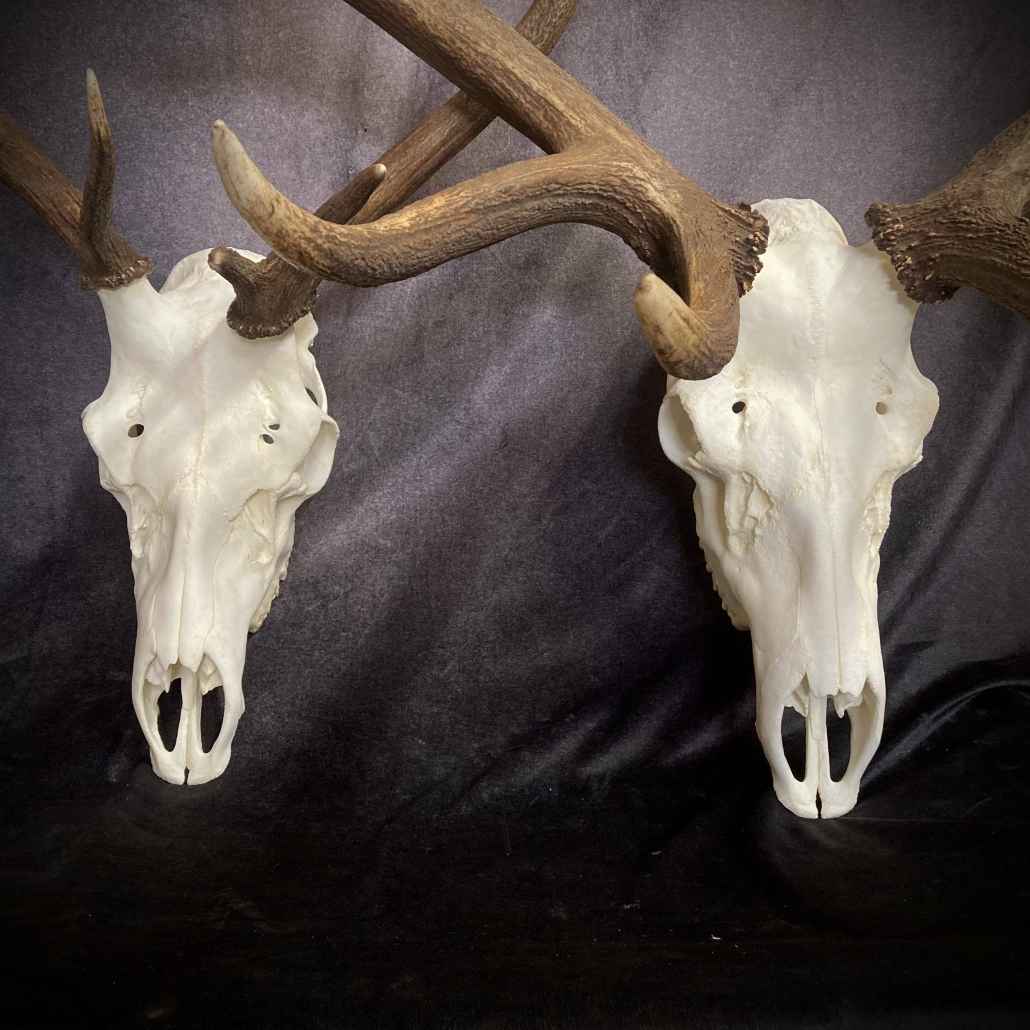 Extremely realistic replica skulls, custom fitted to your horns/antlers, to turn skull caps, shed antlers, and replicas into classic European mounts.