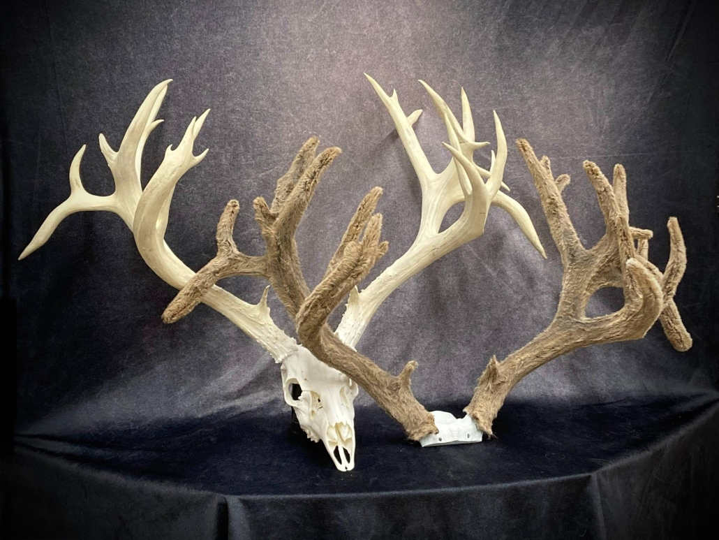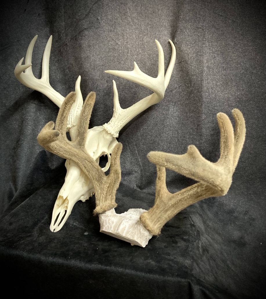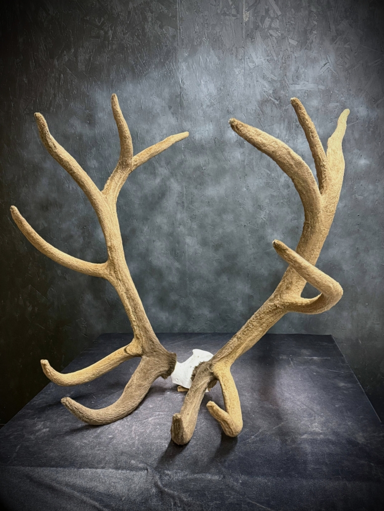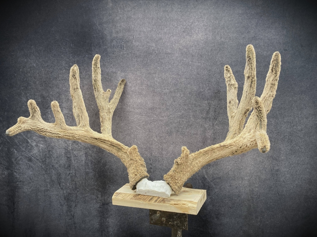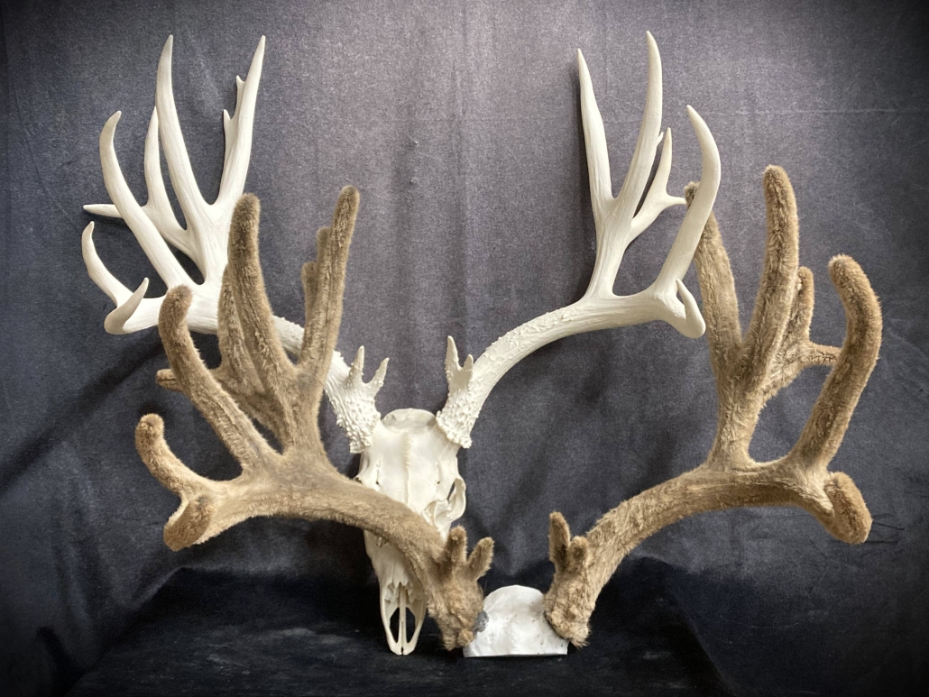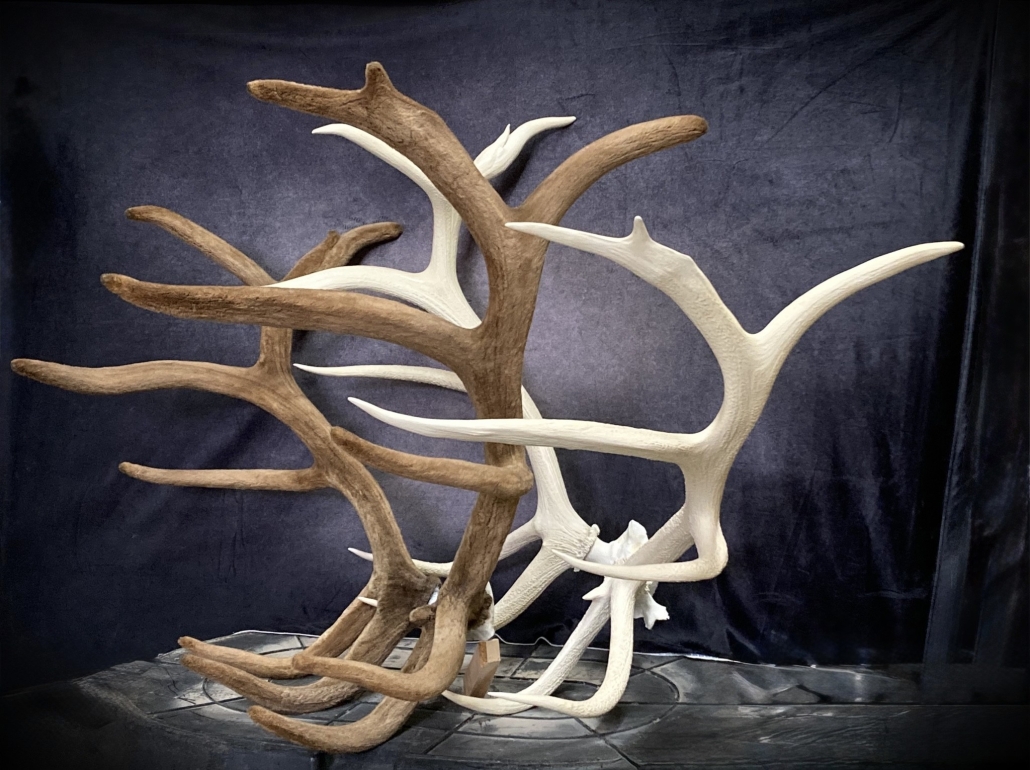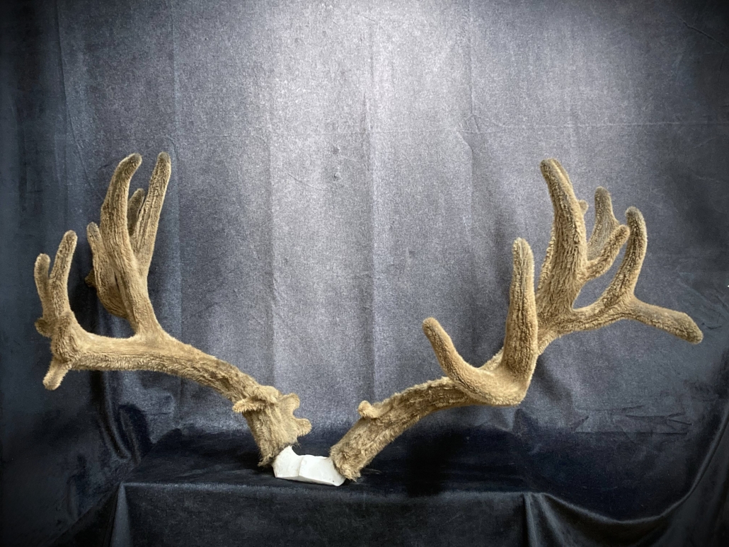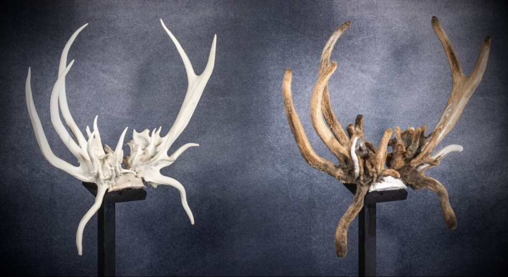 Beginning with fresh/frozen velvet antlers, the natural velvet is transferred to a replica set for total preservation of original size and ultimate durability. This creates an exceptional set of natural-velvet antlers as well as frees up the natural hard antlers.