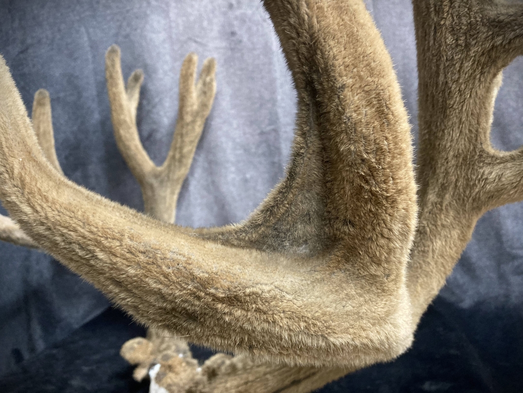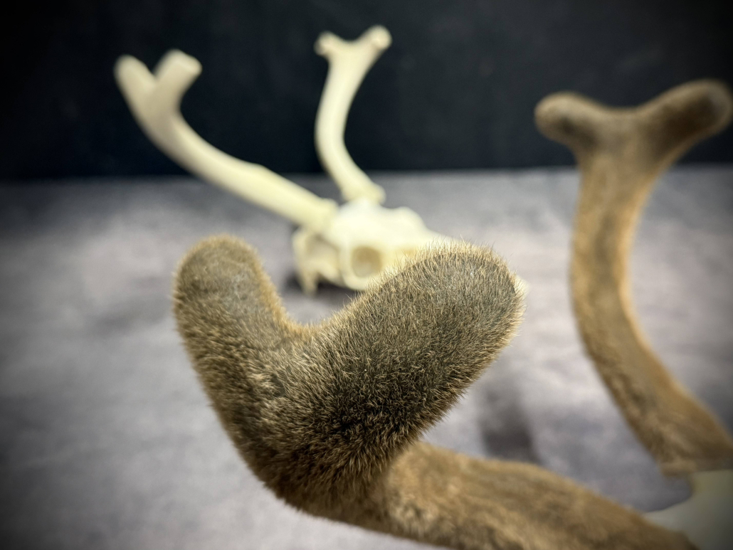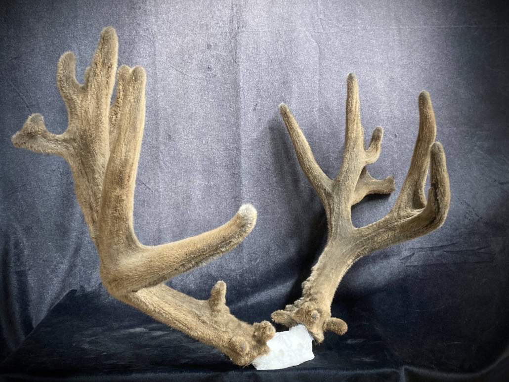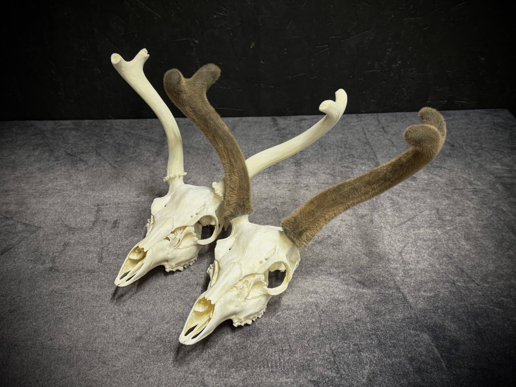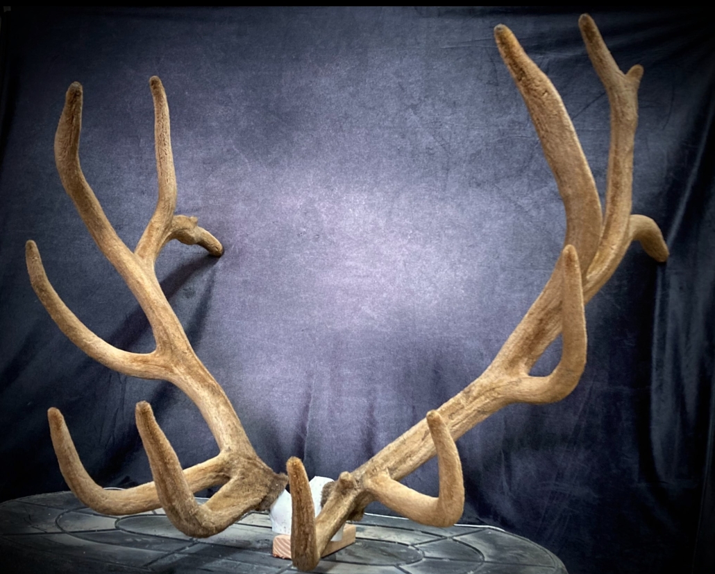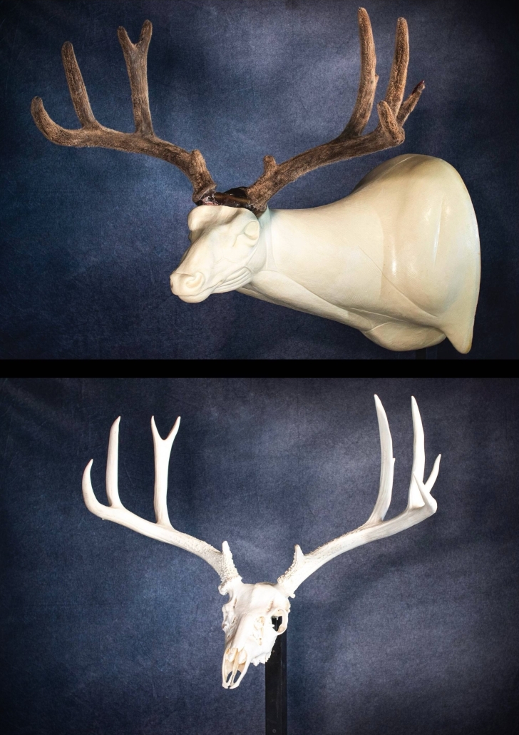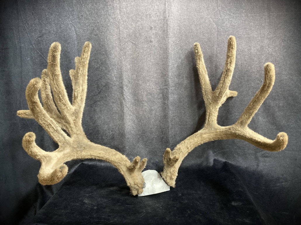 Beginning with fresh/frozen velvet antlers, the natural velvet is transferred to a replica set for total preservation of original size and ultimate durability. This creates an exceptional set of natural-velvet antlers as well as frees up the natural hard antlers.